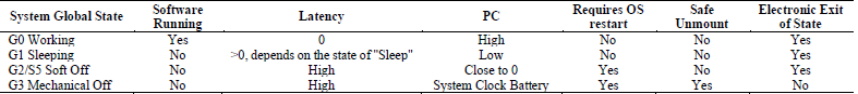 This objective is based on the analysis of the GNS sets, which must have some form of EM as well as network management capabilities. The industry-standard advanced configuration and power interface (ACPI) is used to define common interfaces for hardware recognition, device configuration, and PM [1]. The ACPI defines the states as shown in Table 1.