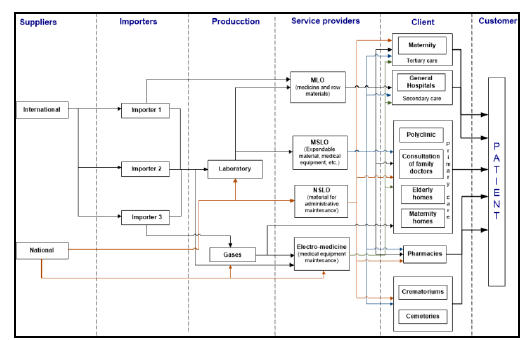 Figure 2: Hospital supply chain in a Cuban territory, with a focus on tertiary care in maternity hospitals.