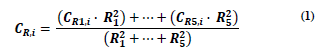 Aunque tradicionalmente los trabajos proponen limitar el radio de actuación de las estaciones a distancias inferiores a 100 km y cuyas altitudes no excedan los 500 m de altura [19], dada la amplia extensión de la zona, carencia de series homogéneas previas y alto porcentaje de datos faltantes, el criterio correlación prevaleció sobre distancia para procurar la generación de series válidas. Altos índices de correlación indican áreas con una similar dinámica climática, facilitando el proceso de generación de series temporales en áreas con baja disponibilidad de datos [23-25]. Las series fueron finalmente calculadas usando las cinco mejores estaciones candidatas, corregidas a partir del coeficiente de correlación (eq. 1) de donde CR,i es la variable climática (temperatura media o precipitación mensual) de la serie de referencia R en el mes i, CRn,i es el valor de la variable climática de la estación Rn en el mes i y Rn 2 es el coeficiente de correlación entre la serie de la estación candidata y la estación de referencia.
