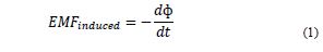 Faraday's law states that if an electrical conductor is placed in the presence of a magnetic field, the conductor will keep current if the system has a variable flow [9]. As shown in eq. (1), the induced electromotive force (EMF) will vary as fast as the flux of the magnetic field varies over time.