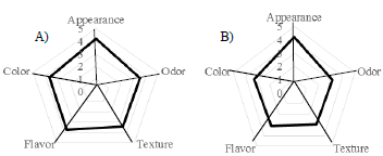 Figure 1: Sensory attributes of A) F3, B) Control.