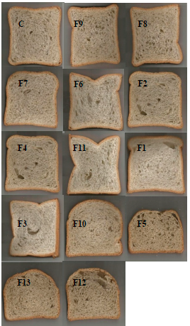 However, fortified bread showed better values than the control in terms of sensory profile, whose mean obtained scores between 3.4 and 3.7 on a scale of 1-5. In general, the F3 formulation presents attractive scores for attributes studied (p <0.05) (Fig. 1), this is an essential requirement for the development of a new product. A physical view of the formulations presented are shown in Fig. 2. Food fortification is one of the most popular strategies today to achieve products that are characterized by presenting components that promote health benefits, including functional foods [46-48]. Chia seed seeds mucilage have been shown to be included in bread for their ability to substitute fat while preserving quality attributes and making them healthier foods [49].