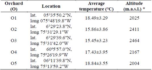 High altitudes or low average temperatures were related to better GQ. This finding could be possible because the orchards at low temperatures had a long fruit development time (220 d) compared to that of others (216 d) according to the results of Rodriguez et al. [4] for the same orchards.