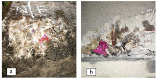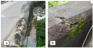 Figure 4: Disaggregation of concrete and armatures exposed: a) San Jacinto and b) Ronco bridges.
