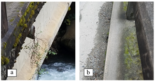 Additionally, during inspection it could be verified that some bridges present their drainage systems obstructed by garbage or vegetation, thus evidencing lack of cleaning service (Fig. 7).