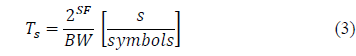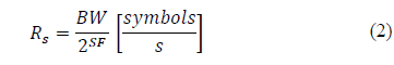 taking SF values from 7 to 12 [27]. Likewise, the rate of sending symbols R S is established in eq. (2),