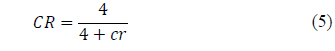 The LoRa modulation also includes another parameter for possible variations in error correction at the sending of symbols. This parameter provides greater robustness in sending the signal, thus mitigating some adverse effects in the loss of information. This correction factor is called the coding ratio (CR), whose values are defined in eq. (5)