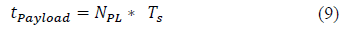 In eq. (9), N PL is the number of symbols of the sent payload, and this value is computed by eq. (10).