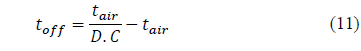 To determine the waiting time between packages sent, the airtime of this data must be related to the useful cycle of the signal, therefore, eq. (11) calculates the signal downtime.