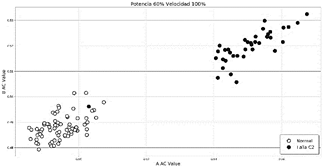 Figura 12: Clasificación normalizada basada en valores AC de la fase A y B, falla C1, velocidad 100% y carga 60% - Verificación.