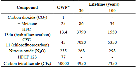 * Global Warming Potential (GWP) Source: The authors.