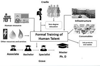 The operation and maintenance of a university is a socioeconomic process that transforms raw materials, energy, and water into wastes, while it conducts its activities. Every part interacts and interchanges materials, energy, and information with its surroundings through a complex network [6]. These flows should be monitored and analyzed from the point of view of sustainability and adopting a quantitative methodology that considers their negative impact and environmental damage to plan mitigation measures that can be implemented and identify potential emission reductions [5,7,8].