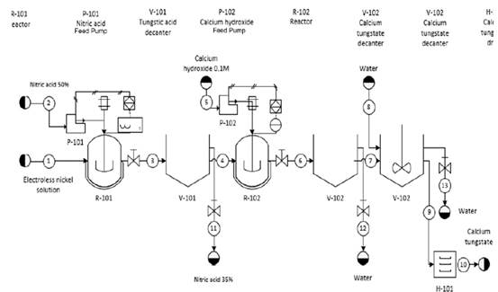 Moreover, the key plant design considerations were successfully established from laboratory scale experiments and basic operational parameters. The installation of this tungsten recycling plant is projected as a contribution to the national chemical industry and as an environmental strategy to reincorporate raw materials in the EN solution formulation.