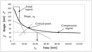 Figure 5: Design parameters for V-101 obtained from the settling velocity curve of tungsten oxides