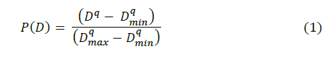 where D is the particle size, P(D) is the weight fraction of total solids that are smaller than D, D max and D min are the maximum and minimum particle sizes, respectively, and q is the Fuller exponent. The value of q was determined in previous research [4].