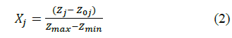 where X j is the coded factor level, Z j is the real value of the factor, Z 0j is the real value of the factor at the center point, and Z max - Z min represents the difference between the maximum and the minimum values of the factor considered in the factorial design.
