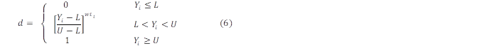 Derringer & Suich [42] defined the desirability cases of minimization, maximization, and in range individual responses, as in Eqs. (5), (6) and (7), respectively.