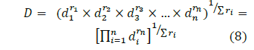 The most widely used method to draw the optimal solution is to optimize by converting multiple desirability functions into single desirability D [42]. The geometric mean of the specific desirabilities characterizes the overall desirability as follows in Eq. (8):