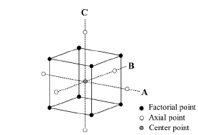 Figure 4: Central Composite Design for 3 design variables at 2 levels