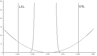 Fig. 11 shows the graph of the distribution of the hardness variable with the optimal values obtained in superposition with the loss function. It can be seen that the area of the distribution that exceeds the specification limits is the minimum possible under the experimental conditions.