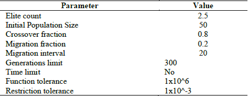 The initial parameters for the genetic algorithm are shown in Table 4.