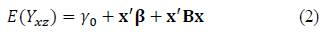 The model in eq. (1) is fitted by the least squares’ method. Subsequently, eq. (2-3) are estimated according to the required terms. An important detail is that the model in eq. (1) must contain control x noise interactions, in order to determine the eq model. (3). Terms δ+x' C are the partial derivative with respect to z of the individual elements and interactions that contain z in eq. (1).