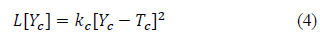 L[Yc ] is given by a Taylor series expansion around Yc=Tc neglecting the cubic terms hereafter. Constant kc is known as the coefficient of quality loss for the quality characteristic, it is defined as eq. (5).