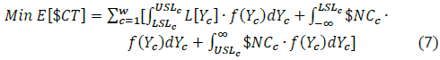 Where E[$CT] is the total expected cost (fitness function). LSLc y USLc are the specification limits for lower and upper respectively for each of the quality characteristics, Y