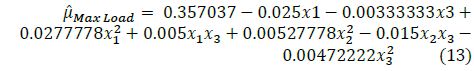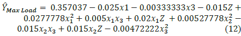 For the determination of the models in eq. (1) it is necessary to particularly maintain the control x noise interactions to determine the variance model in eq. (3). There are no significant elements in the model, but they are maintained in order to cover the previous requirement. Only terms x2,x1 x2 y x3z are removed which yielded a value of β=0, likewise the interaction z2, which is not necessary for the variance model. The four terms are eliminated to gain degrees of freedom in the error, the model is shown in eq. (12).