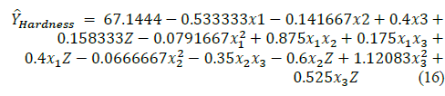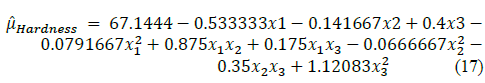 In the model for hardness only the term z2 is eliminated to gain degrees of freedom in the error, the model is shown in the eq. (16).