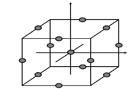 The design points are located at the edges of the cube centered at the origin. This design does not include vertex treatments that are sometimes very extreme and cannot be run due to process conditions. The representation of the design is shown in Fig. 4.
