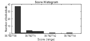 Fig. 10 shows the scoring histogram obtained with the genetic algorithm. The algorithm converges in iteration five with approximately 40 individuals on the optimal value. The coded values obtained for x1=-0.007, x2=0.904 and x3=0.632. The value obtained for the function E[$CT]=38.79277383.