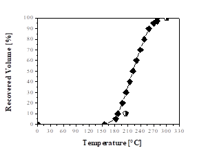 The distillation curves of the distilled fractions were obtained according to the official method (ABNT/NBR 9619) using an automatic distillation apparatus (Tanaka, model: AD6).