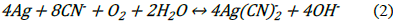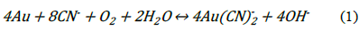 As observed in Fig. 2, the extraction of Au and Ag is low. Some authors have reported that, during the cyanidation process, Ag is frequently associated with Au, resulting in cyanide and oxygen consumption and in a simultaneous dissolution of Au and Ag, as shown in Equations 1 and 2 [15]: