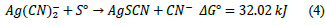 Silver (Ag) dissolution is affected by the presence of elemental sulfur (S°), since this latter promotes the precipitation of silver thiocyanate [18], as shown in Equation 4 [17]:
