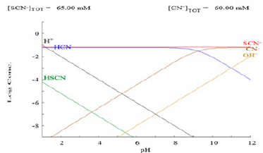 Figure 3: Species distribution diagram calculated for the system CN--SCN- [19].