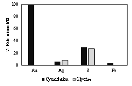 cyanidation, glycine, precious metals, chalcopyrite leaching by-product.Resumen
