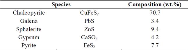 Table 1: Chemical analysis of the chalcopyrite concentrate (wt. %).