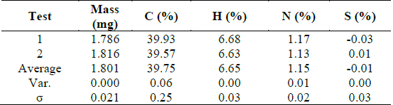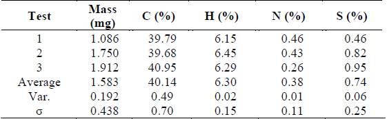 The following were determined for the compost and experimental sample: the total solids (APHA 2540D) and the volatile solids (APHA 2540E; [17]) with Thermolyne Type 1500 Muffle Furnace. The compost’s pH (ASTM D3987) with an Oakton pH110 multiparameter, in 3 consecutive readings was also determined. The quantity of C, H, N, and S for the experimental sample was determined through the elemental analyzer PerkinElmer 24000, using the technical procedure PTUSAII-FQ-AE-001 from the Unit of Support Services for Research and Industry (USAII, for its acronym in Spanish), from UNAM.