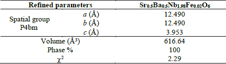 Table 1: Rietveld refinement parameters for Sr0.5Ba0.5Nb1.98Fe0.02O6.