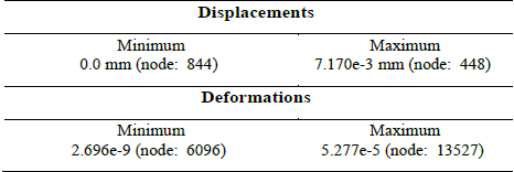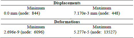 Table 14: Static analysis of stresses, displacements, and deformations.