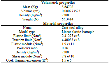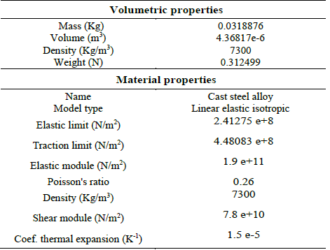 The mesh properties are shown in Table 13 and they are the same as the previous pieces.