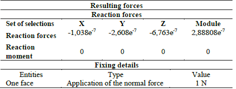 The normal force of 1N is applied to the screws, the resulting forces are shown in Table 12.