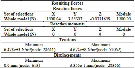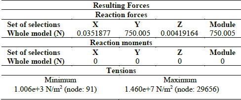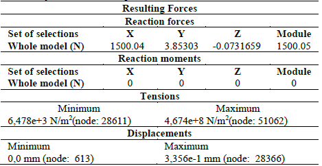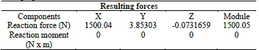 In Table 14, it is possible to observe a concentration of forces at the ends of the screw, but the design achieves a good dispersion of loads.