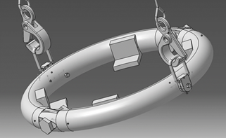 Figure 8: Projection of swing clamping ring hanging from steel cables.