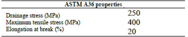 Table 2: Minimum values for the properties of A36 steel established by the ASTM standard.