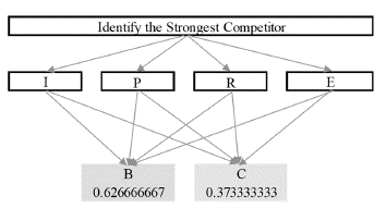 This information was analyzed to identify the strongest competitor between companies B and C. For this purpose, the AHP tool was applied with the features reported in Table 5. Note that these features were associated with the following criteria: Price (F1→ P), Relationship with Company A (F2 → R), Identity/Brand (F3 → I), and Channels (F4 → E).