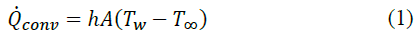 where Q ̇conv and Q ̇rad are the heat lost by convection and radiation, respectively, h is the convection heat transfer coefficient, A is the area determined by a MATLAB code, Tw and T∞ are the representative temperature of every area and the room temperature, respectively, ε is the emissivity of the walls and σ is the Stefan - Boltzmann constant (5.68×10-8 W⁄m2.K4).