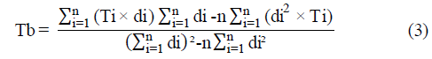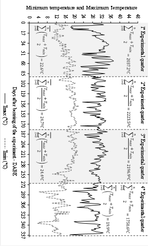 Tb - lower base temperature (ºC); Ti - the average temperature of each specific period; n - number of the cut cycles; di - number of the days to meets the development stage in each cutting series or cycle.