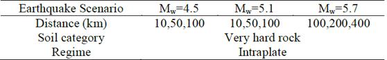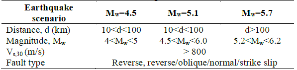 Table 4: Earthquake scenarios for the generation of synthetic accelerograms